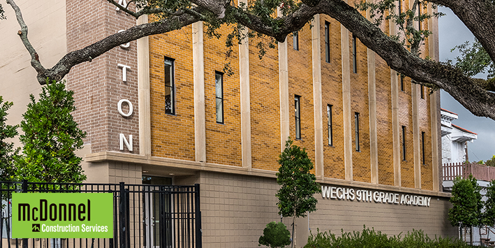 This school construction project is the Warren Easton Charter High School 9th grade expansion. The project is a historical renovation of a five-story building that increased one local high school’s much needed reach and capacity to serve the local community and students in New Orleans, LA. This new educational building, totaling over 22,500+ SF, is the first stand-alone ninth grade academy in New Orleans. This separate space allows the students an easier transition to high school. The facility offers a dining hall, 2 science labs, and 17 classrooms to accommodate the students. The Pelican Chapter of the Associated Builders & Contractors recognized this building with an Excellence in Construction Award in 2022.